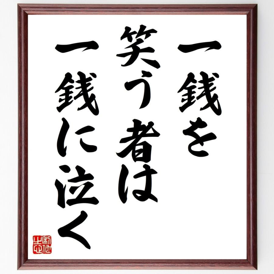 名言書道色紙 一銭を笑う者は一銭に泣く 額付き 受注後直筆 Z1751 直筆書道の名言色紙ショップ千言堂 通販 Yahoo ショッピング